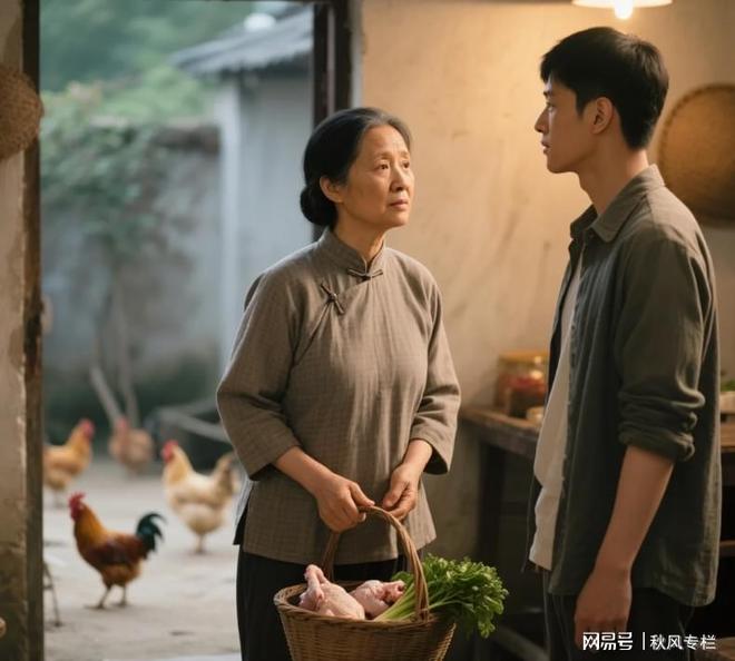 我回头一看,我妈拎着菜篮子从外面走进来。她看了看院子里的鸡,又看了看我们俩,脸上没什么表情。