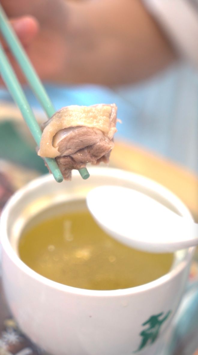 整个制作过程都在餐厅开放式厨房完成,不知不觉,一个小时就过去了。这道菜叫做肥西老母鸡汤,味道咸鲜口儿,每只鸡都是24小时内宰杀处理好运送过来的。只有合肥、六安之外的区域,接收到的肥西老母鸡是按照每48小时一配原则进行配送,足以保证原材料的新鲜。
