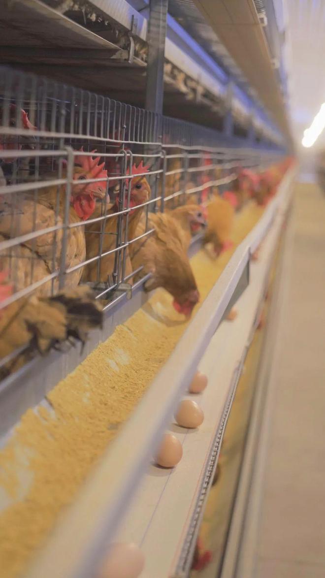 由于鸡舍内部也配备智能化鸡蛋采集、饲料饲喂、饮水投喂、清粪系统,只要一个人就能照顾好3万只鸡。